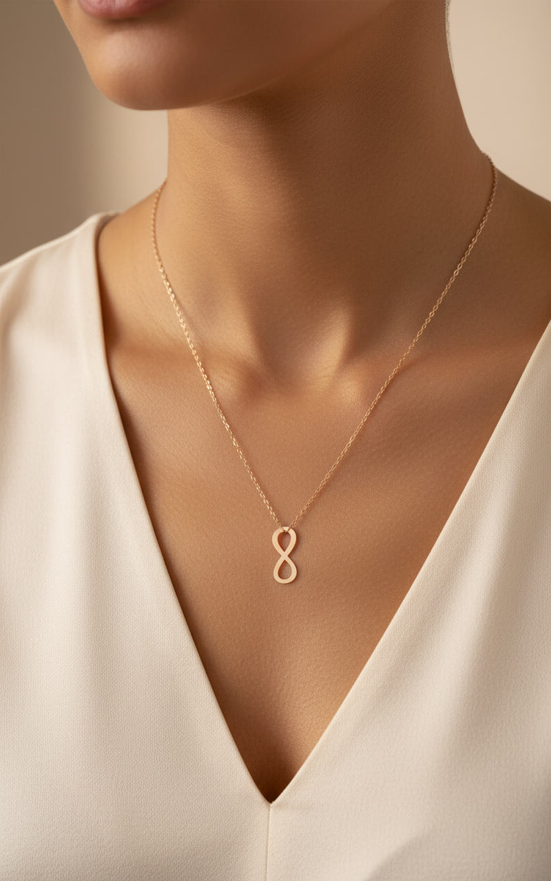 گردنبند طلا 18 عیار زنانه مدل بدون حلقه طرح بی نهایت