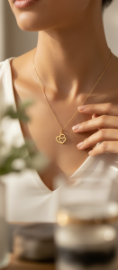 آویز گردنبند طلا 18 عیار زنانه مدل حلقه دار طرح دو قلب